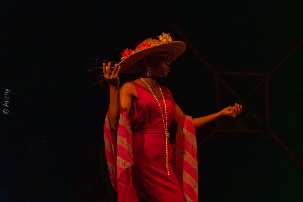 Au lieu d’une simple commande d’habit, la dame Marina, très maniérée, et Francesco, le couturier vantard, en sont venus à s’affronter avec des mots rimés dans un échange de discours grandiloquents tantôt graves tantôt comiques. Il s’agit d’une comédie bouffonne, une sorte de vaudeville dans laquelle le dialogue, à un moment de l’intrigue, a été chanté et dansé. Le rythme de la pièce a été rapide et soutenu en ne laissant aucun répit aux spectateurs. Les acteurs Manavi Happy Sossou et Guy Hounou se sont surpassés en donnant le meilleur d’eux-mêmes. Par moments, l’affrontement verbal devenait un affrontement des corps lorsqu’il tendait vers la sensualité. Les moments comiques ont suscité beaucoup de rires des spectateurs. Le personnage Francesco, qui se prend pour un artiste de la haute couture, a raconté ses déboires conjugaux avec son ex-épouse, qu’il aime toujours, que lui a arrachée son rival et voisin d’atelier, Donatien, un tailleur comme lui. Au cours de la querelle, Marina menaçait chaque fois d’aller chez son rival s’il ne voulait pas lui coudre la robe qu’il désirait. Et il l’empêchait de sortir de l’atelier.